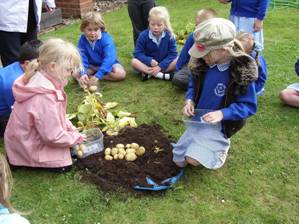 children, along with Reception class, planted potatoes as part of a national